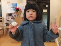 ひとつだけのスノーマンお菓子バッグを手にしたのはゆうとくん!メリークリスマス(*^^)v