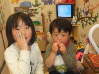 しおんちゃん♪そうしくん 二人とも上手にお口を開けてくれました♡