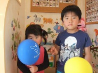 おりこうさんに待っててくれました♡先生から赤い風船プレゼント♪じゅじゅちゃん♡