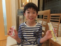 おひさしぶり~☆の、はるとくん♪チョコ味のハミガキで歯ブラシがんばってくれてたよ!えらい!