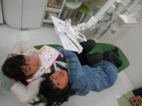 いつも仲良し姉妹♡歯医者さんの椅子も仲良くすわります(笑)ふみなちゃん♪あやかちゃん♪