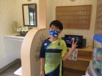 まいかちゃん(*´ω`*)ポーチとマスク可愛いね♡ピースしてくれました✌✌