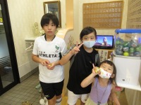 そうたろうくん・ももかちゃん。。。くにゃくにゃ鉛筆とバナナの消しゴムGETしました(^^♪手に持ってポーズヾ(≧▽≦)ノ