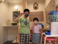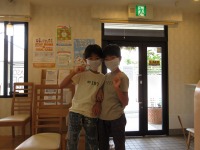 たくとくん☆彡はるまくん☆彡金メダルとロケット消しゴムGETです!!仲良くピース✌✌