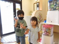 はなちゃん♡ハートのTシャツ可愛いね(*^▽^*)ガチャガチャ持ってピース✌✌