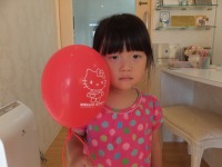 大きな風船とハイチーズ☆ガチャは何が出たかのな?いつもピカピカの歯のあかねちゃんです♡