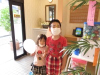 ゆなちゃん♪七夕の笹の前でピース✌✌願いごとがかないますように!!