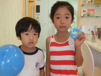 今日はだいき君の番でした☆大好きなアンパンマンのTシャツお似合いです♡姉のあやねちゃんと♪