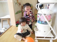 みずきちゃんはガチャDAY♡あきらくんフーセンプレゼント★仲良し兄妹です('ω')