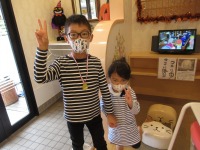 じゅじゅちゃん。。。水玉のマスク似合ってるね。ガチャガチャを持って可愛いポーズしてくれました(●´ω`●)