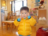 お母さんを待っている間に...サンタさんに変身!!るいくん(*^-^*)
